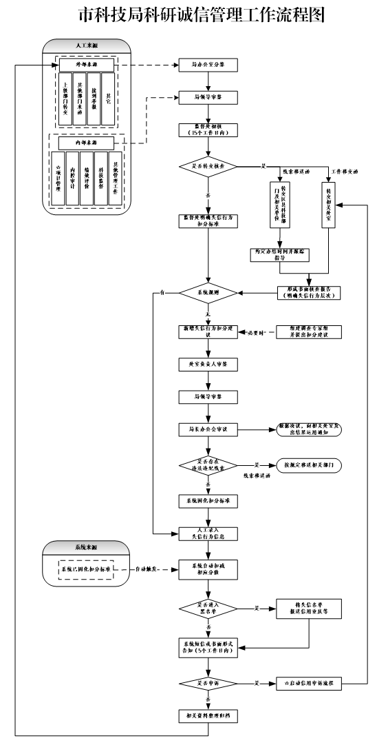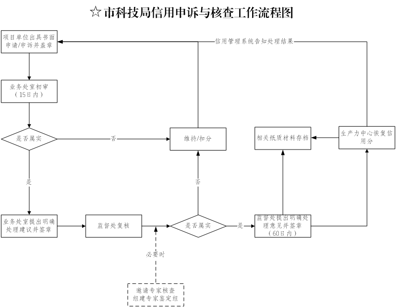 第十八条 根据实际需要,失信行为扣分标准可按照“相关项目管理单位(部门)提出建议——处室核查——专家(科技监督与诚信建设专家委员会)评定——会议决策”的流程,对相关内容进行新增、删除和修改。