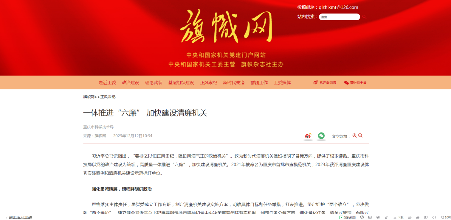 实干争先有力,风清气正机关氛围明显提升。通过建立健全“三张工作报表”赛马比拼机制,举办书画影作品征集、微宣讲比赛、红色家书品读会等,运用科技领域违法违纪等典型案例深化“以案四说”警示教育和以案促改、促治,开展不作为慢作为乱作为、工程领域招投标等突出问题专项整治,党员、干部从严从实之风明显进步。经验做法获第四届全国党建创新成果“百优案例”,全市首批清廉机关建设试点示范、首批清廉重庆建设优秀实践案例,获市级以上表彰奖励的集体(个人)14个。